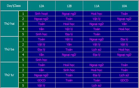 Thời khoá biểu (Buổi sáng), Học kỳ I, năm học 2025 - 2026 (Thực hiện từ ngày 10/11/2025)
